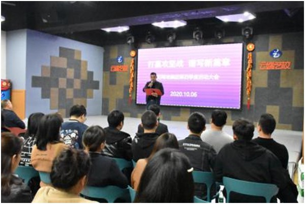 2020年10月06日晚,新陽駕培集團在岳陽市云端藝校演播廳召開第三季度工作總結(jié)表彰暨第四季度啟動大會。19時許,全體教職工在氣勢磅礴的宣誓詞和激昂的教練之歌的歌聲中拉開帷幕。